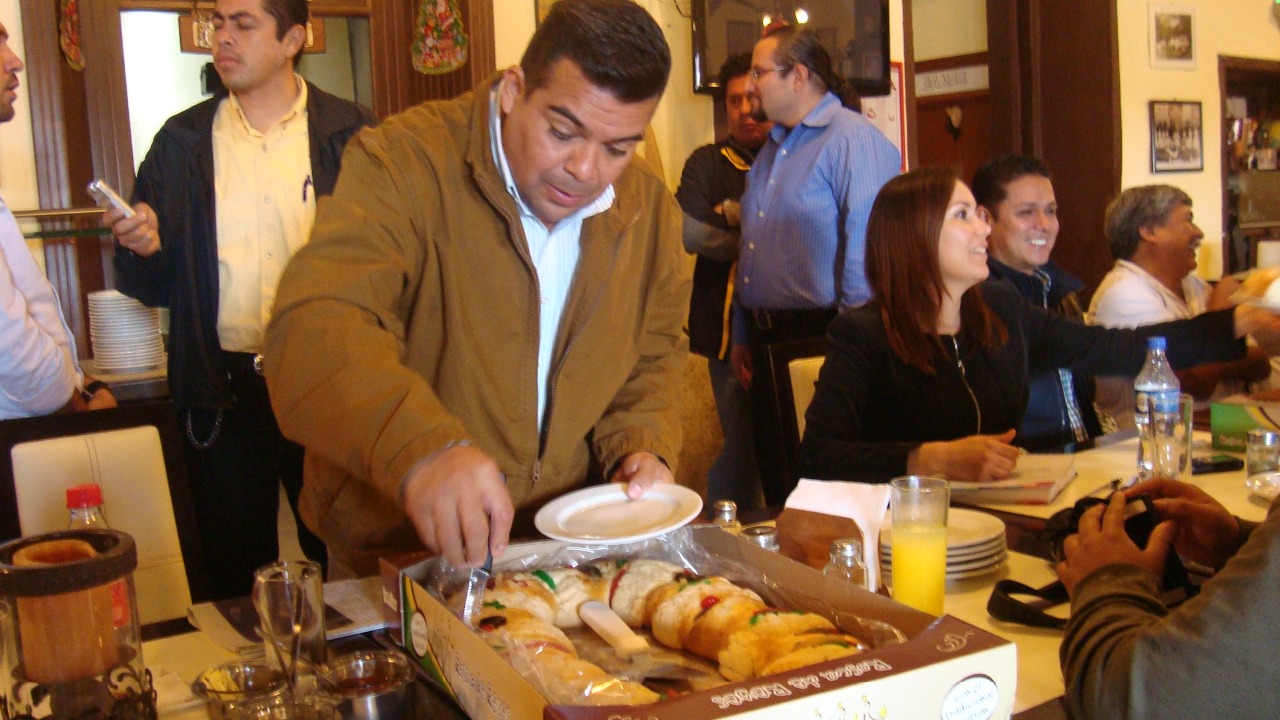 El líder de PAN partiendo la rosca de reyes, en la ya tradicional veranda purado en la rosca .